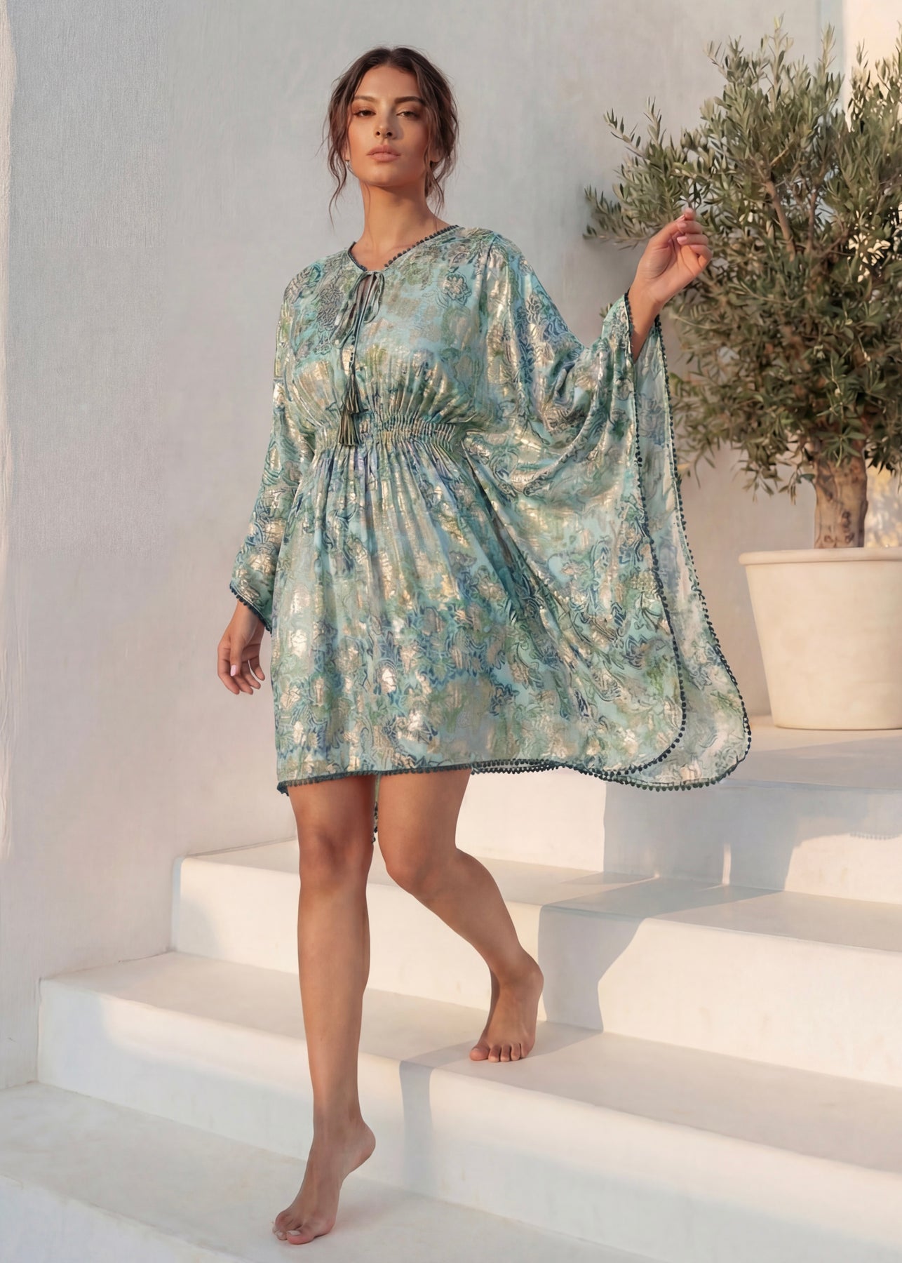 Introducing Our Exquisite Mirage Kaftan Dress, Crafted From Luxurious Viscose Lurex Fabric.